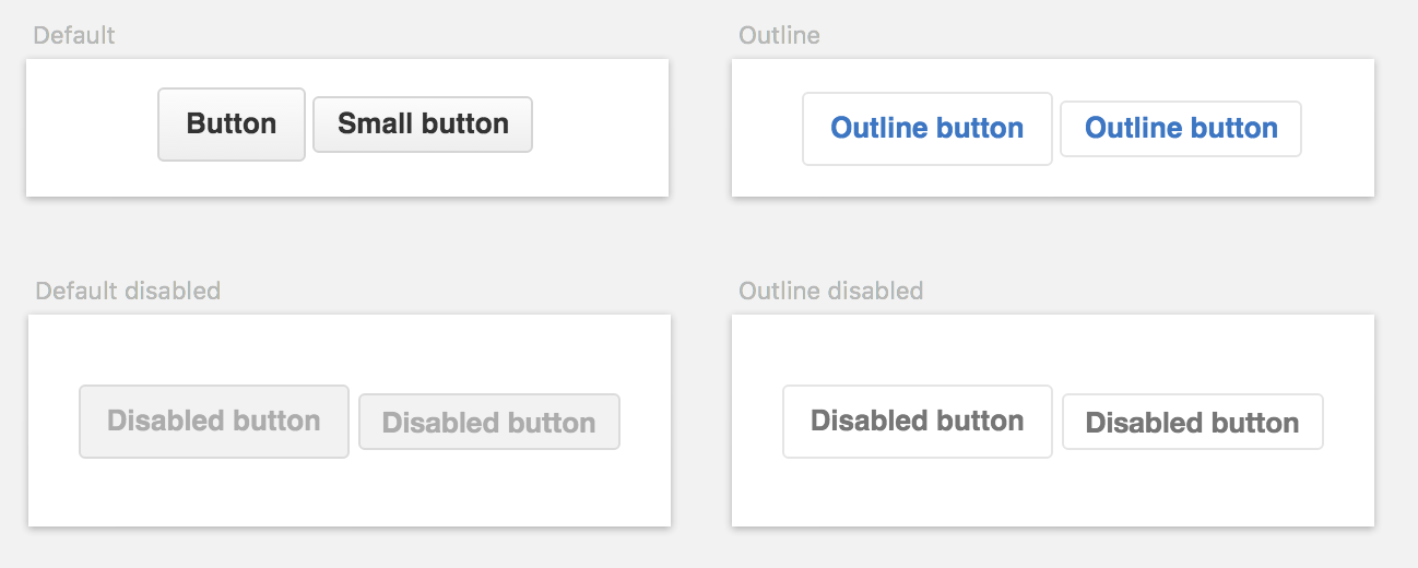 which can be combined: <button class="btn-sm btn-outline">, <button disabled class="btn-outline">, and so on.